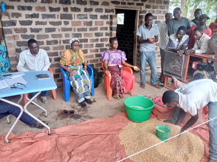 Après la présentation par le Chef du village, nous avons procédé à la distribution des semences améliorées de maïs aux ménages. En recevant les semences améliorées, un membre du ménage appose sa signature dans le registre pour accuser réception. Cela nous permettra d’assurer un meilleur suivi en vue d’obtenir les résultats attendus. »